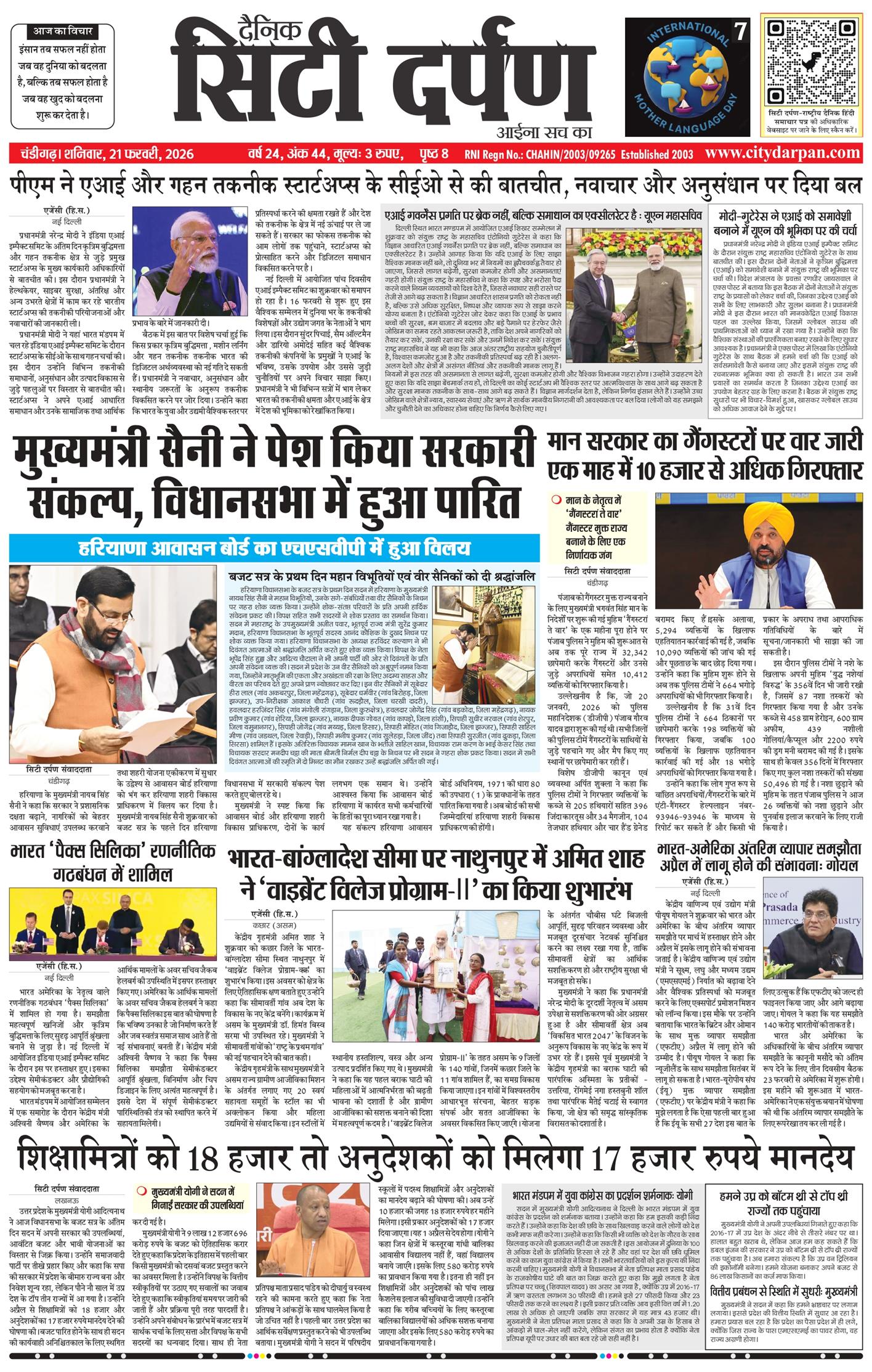 ePaper : 21 Feb, 2026 - Page 1