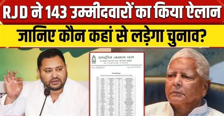 बिहार विधानसभा चुनाव 2025 की तैयारियों में अब तेजी आ गई है। राज्य की सबसे बड़ी विपक्षी पार्टी राष्ट्रीय जनता दल (RJD) ने सोमवार को अपने 143 उम्मीदवारों की पहली सूची जारी कर चुनावी माहौल को गरमा दिया। इस सूची में युवा चेहरों से लेकर पुराने दिग्गजों तक सभी वर्गों को प्रतिनिधित्व देने की कोशिश की गई है।