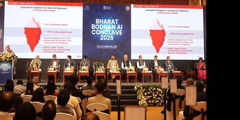 शिक्षा मंत्रालय द्वारा आयोजित,भारत बोधन एआई सम्मेलन 2026, आज नई दिल्ली में संपन्न हुआ। सम्मेलन में भारत के शिक्षा तंत्र के एआई-संचालित परिवर्तन के प्रति प्रतिबद्धता की पुष्टि की गई।