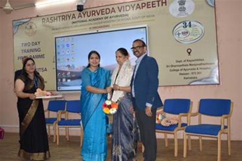 राष्ट्रीय आयुर्वेद विद्यापीठ (आरएवी) ने श्री धर्मस्थल मंजुनाथेश्वर आयुर्वेद महाविद्यालय एवं अस्पताल में 23 से 24 फरवरी 2026 तक कायचिकित्सा पर दो दिवसीय प्रशिक्षण कार्यक्रम का सफलतापूर्वक आयोजन किया।