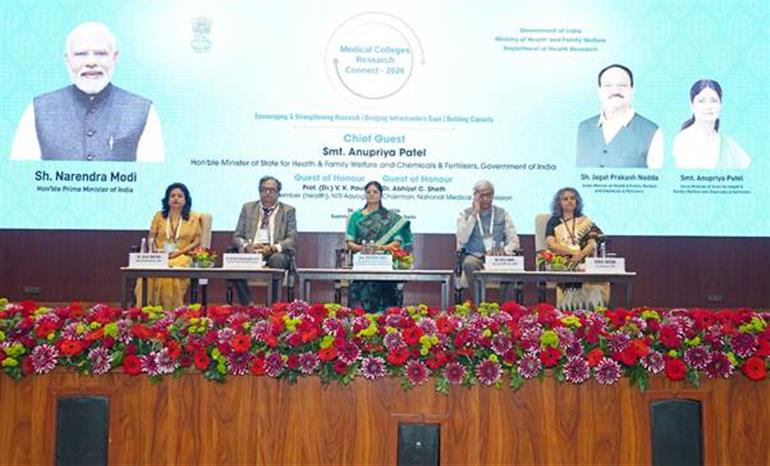 भारत के स्वास्थ्य अनुसंधान इकोसिस्टम को मजबूत करने के लिए मेडिकल कॉलेज रिसर्च कनेक्ट 2026 देश भर के मेडिकल कॉलेजों में स्थापित 100 से अधिक बहुविषयक अनुसंधान इकाइयों को एक साथ लाता है।